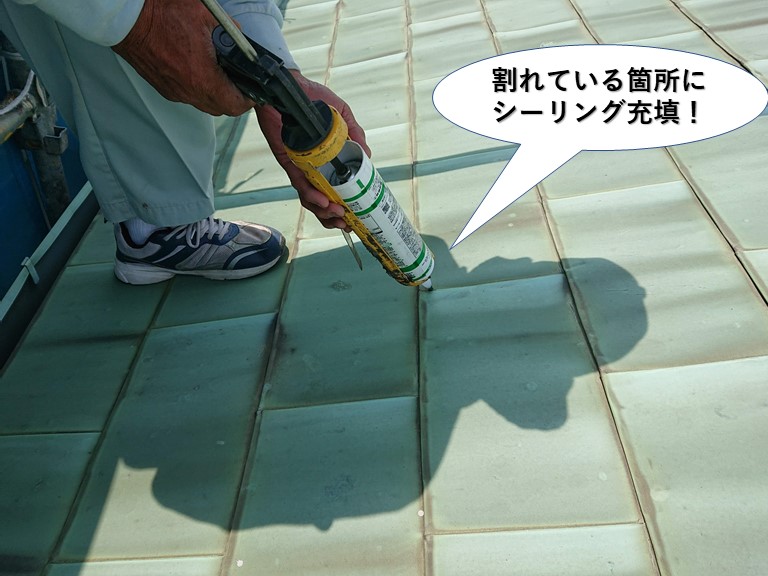 そのため、割れた部分にシーリングを充填して補修することになりました。