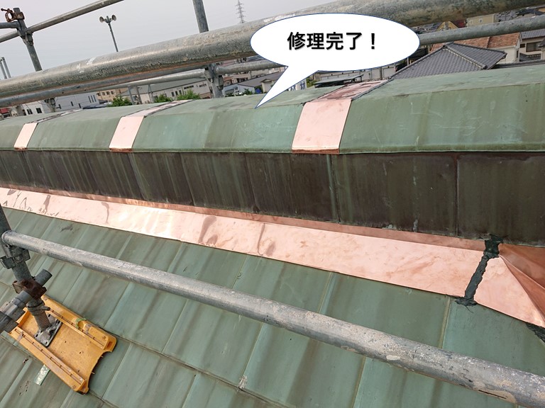 ホーム > 岸和田市の雨漏り修理で銅板晒し葺きの屋根の棟を修理しました