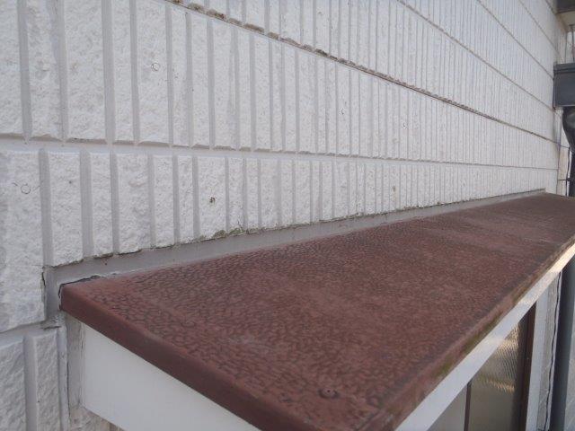 庇とは、窓や開口部の上に取り付ける小さな屋根のことです。庇も外壁に開口をあけて取付けているので、取り合い部分を防水していますが、その防水が傷むと雨水が浸入することがあります。