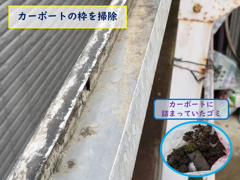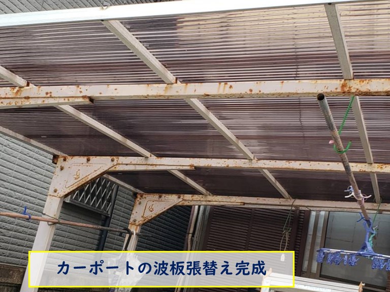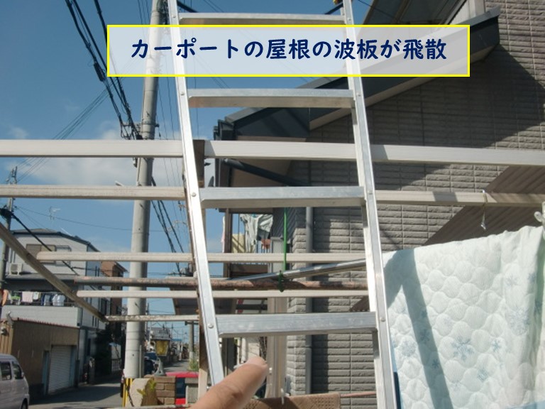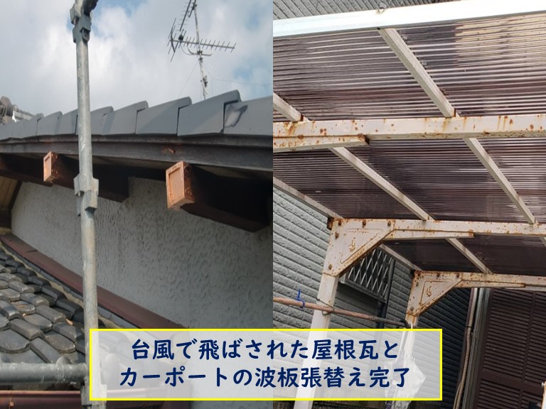 泉佐野市で台風の被災家屋の瓦屋根とカーポートの屋根復旧施工事例
