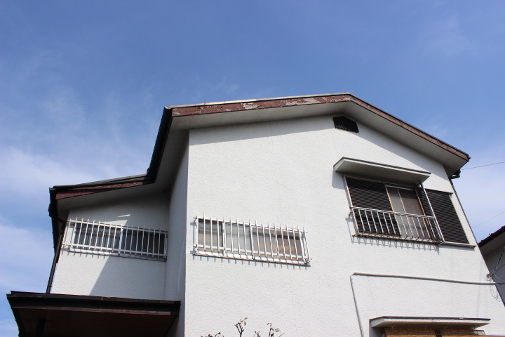 屋根の木製の破風板と鼻隠しの塗膜が剥がれてボロボロになり、見た目が悪くなっていたので同じような症状にならないようにガルバリウム鋼板で巻くことになりました。屋根も塗装のメンテナンス時期になっていたので、同時に塗装することになりました。