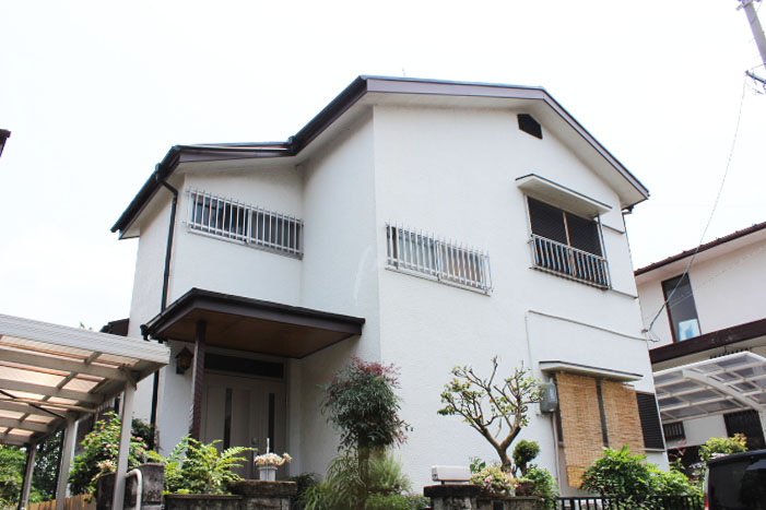 色褪せた屋根を塗装し、破風板や鼻隠しもきれいになったので外壁も明るく見えます。