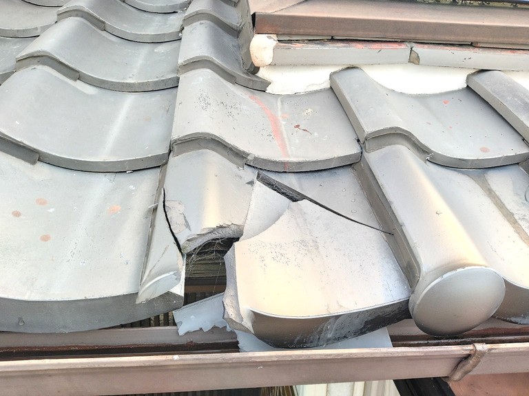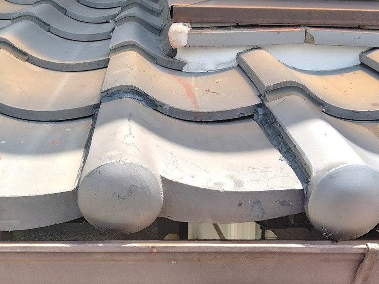 熊取町で屋根の軒先饅頭瓦が割れたため差し替え工事!約3万5千円(工期 1日)