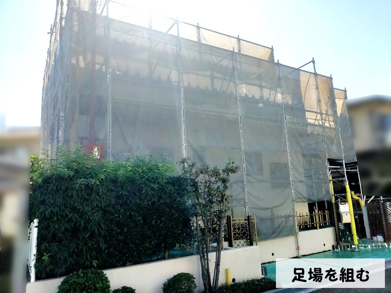 高石市 I様邸で外壁塗装をするにあたり、最初に足場の組み立てを行います!