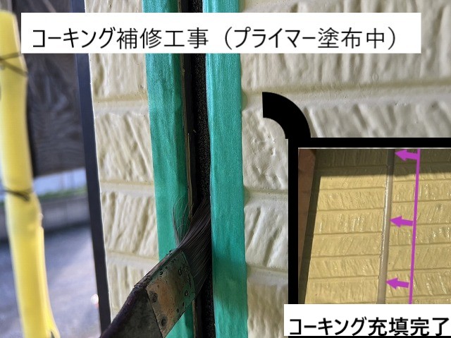 外壁のサイディングボードの継ぎ目や、サッシ周りのコーキングは、経年劣化でひび割れや剥がれが生じやすい部分です。今回は、劣化したコーキングを撤去し、新しいコーキング材を充填する補修工事も行いました。これにより、雨水の侵入を防ぎ、建物の防水性を高めます。