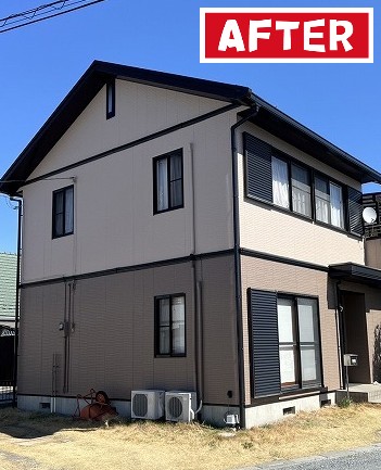 ワントーンだった外壁が、ツートンで1階部分と2階部分の色を塗り分けてイメージチェンジしました。