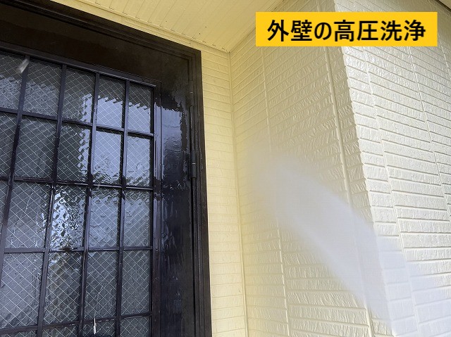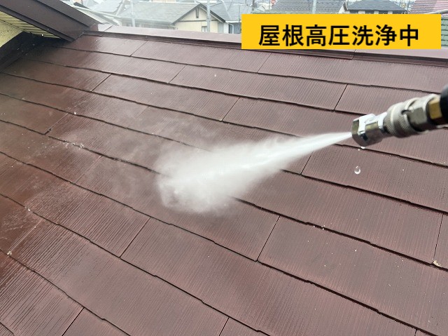 まずは、屋根と外壁に付着した汚れやコケ、古い塗膜などを高圧洗浄で丁寧に洗い流します。この作業をしっかり行うことで、新しい塗料の密着性が高まり、仕上がりが格段に良くなるんですよ✨