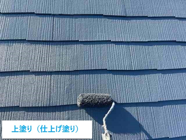 5. 中塗り: 屋根材を保護し、塗膜に厚みを持たせるための中塗りを行います。