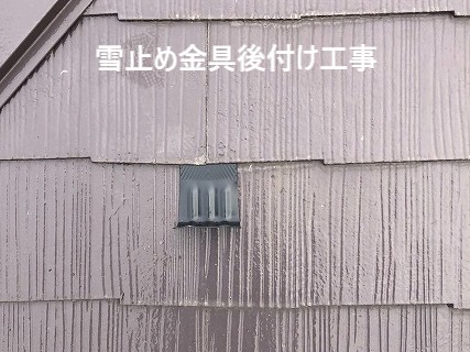 今回は、その反対側に後付けタイプの雪止め金具を取り付ける工事を行いました。