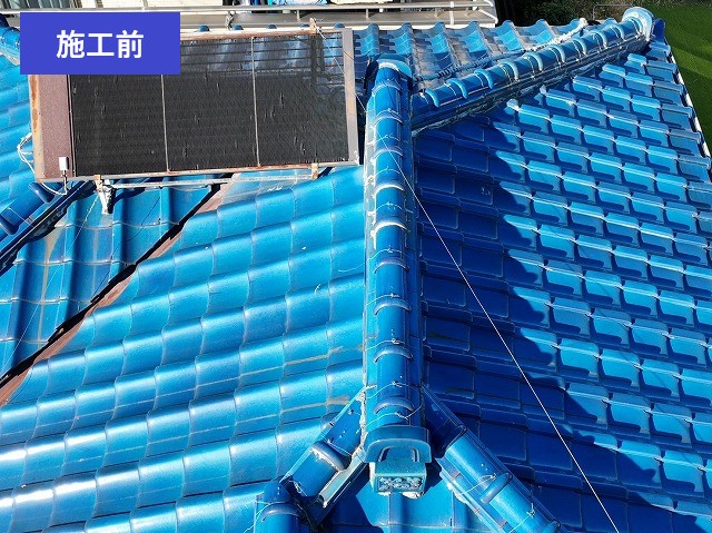 屋根上に設置された大型温水器は、瓦や下地に負担をかけていました。