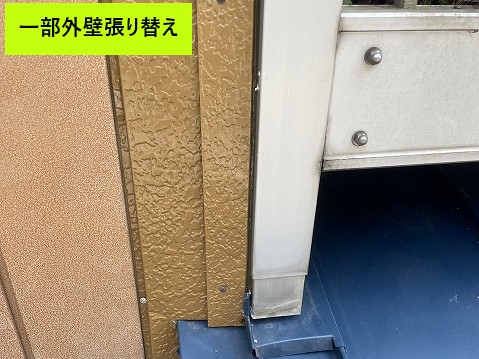 下の屋根と接していた外壁の一部は、サビや劣化により穴が開いていたため、外壁の張り替え工事もあわせて行いました。