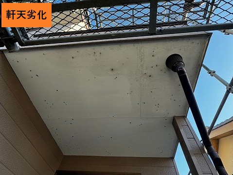 軒天は雨風を直接受けない位置ですが、湿気がこもりやすいため経年劣化が進みやすい部分です。