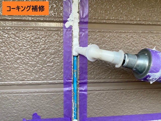 外壁の目地に充填されたコーキングは硬化してひびが入り、隙間が生じていました。