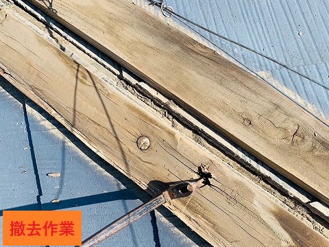 内部の貫板(ぬきいた)を確認すると、木製の貫板は経年劣化が進み、釘が簡単に抜けてしまう状態でした。