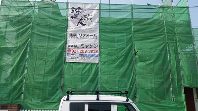工事前に足場を組み立てて工事が始まります。