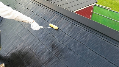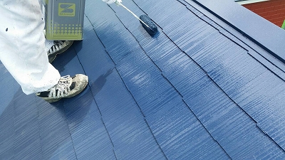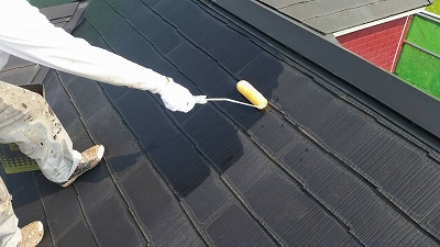 コロニアル屋根の場合、下地の吸い込みが多いので、3回塗りの場合があります。今回は2回塗り工程です。