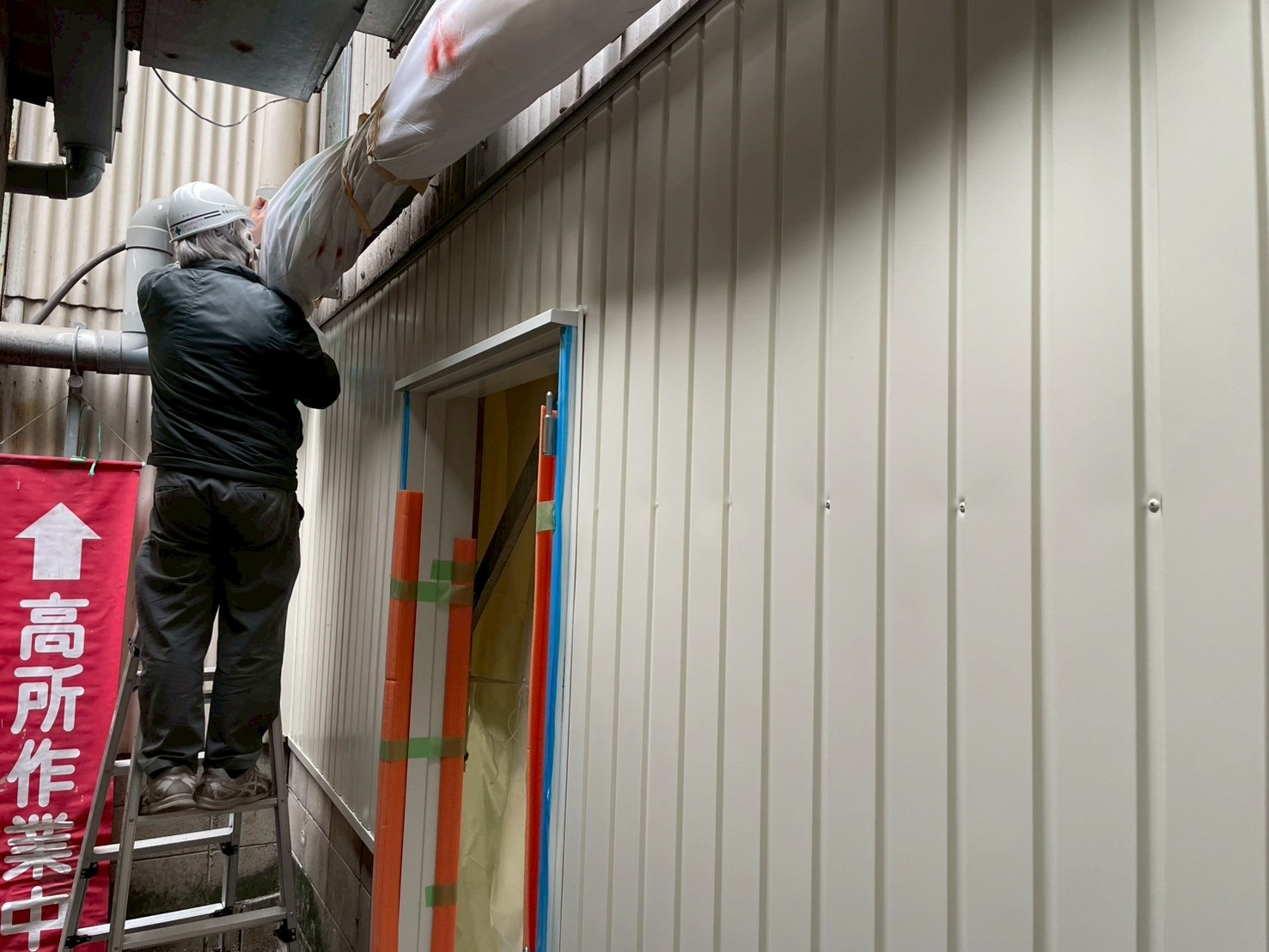 恵那市にて工場の壁一部撤去し出入り口を設置・女子トイレ動線改善の施工事例