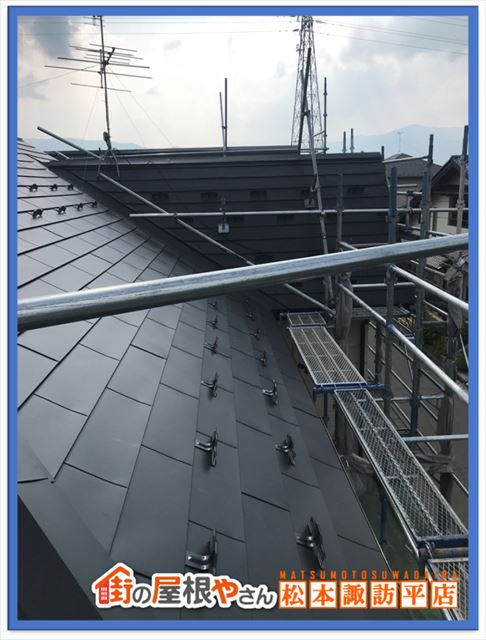 安曇野市で化粧スレート※1の屋根に金属屋根材を重ね葺きするカバー工法の工事を行いました。