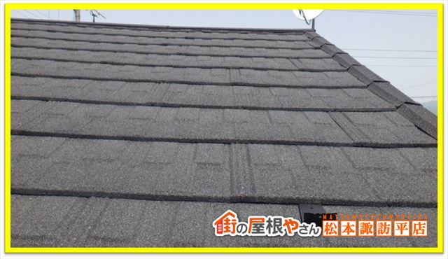 軽量の屋根材に替えたことで耐震性が向上、遮熱シートを入れたので断熱性が向上、天然石の効果でさらに断熱性が高まり、ガルバリウム鋼板の雨音がうるさいという弱点も軽減、メーカー保証30年の長期耐久性、メリットしかない屋根材です。