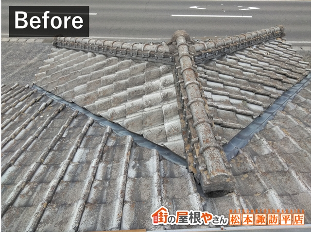 50年の年月が経っているだけあり、ところどころ瓦がズレていたり、棟瓦の歪みも目立っていました。