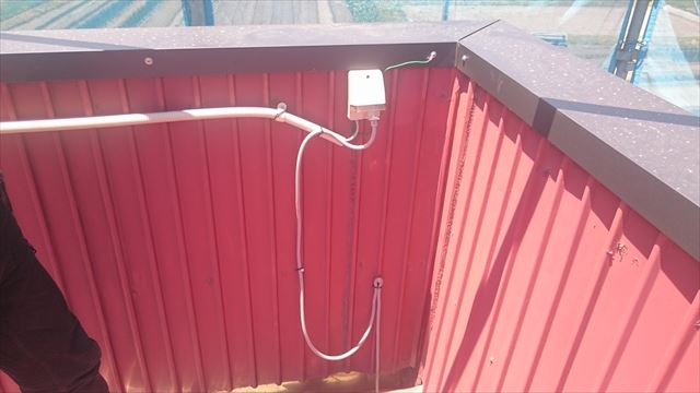 排水路ヒーターはこちらに空いている落とし口へ設置するので電源はここまで引っ張ってきます。