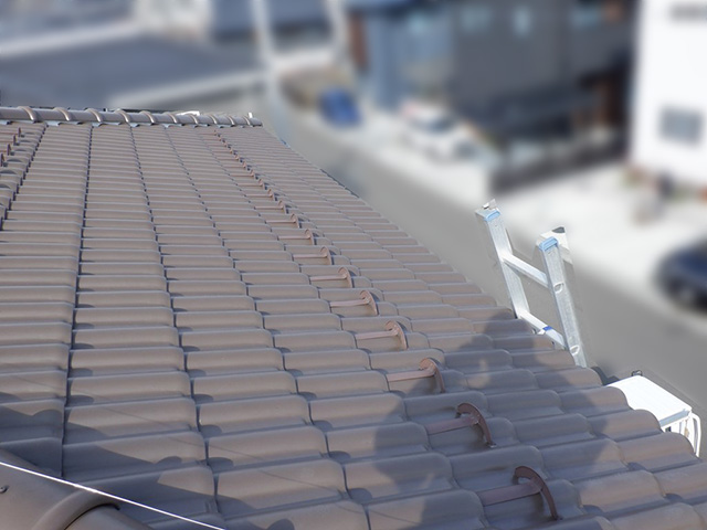 M様邸は築7年の戸建て住宅で、屋根材にはマルスギ社製のイーグルマキシムという陶器瓦が使われていました。