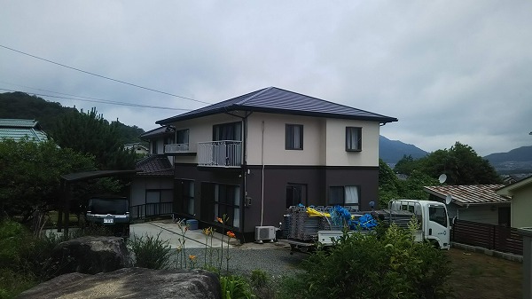 広島県東広島市 セキスイハウス中古住宅より雨漏り。セメント瓦から金属屋根への葺き替え工事をご紹介します。