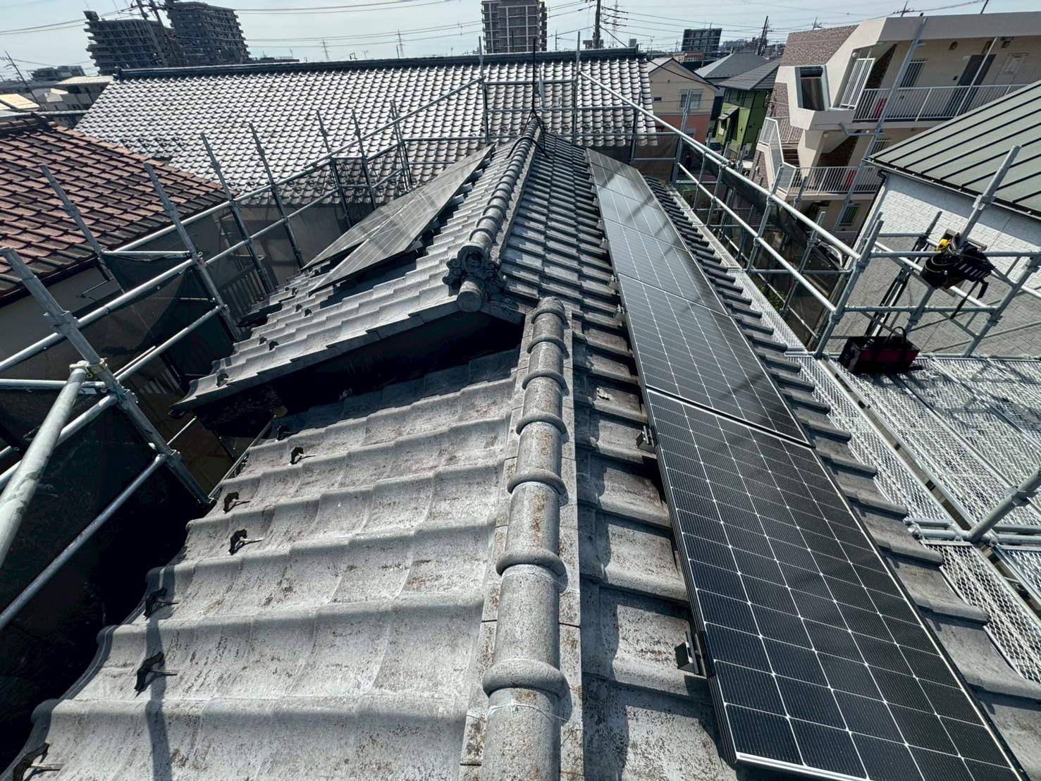 また、既存の屋根には太陽光パネルが設置されていました。