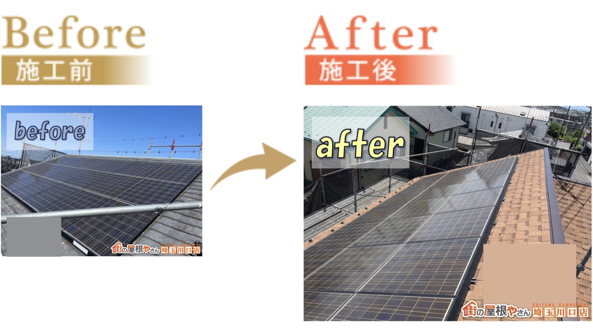 川越市│築27年│汚れが目立つソーラーパネル付きの屋根をカバー工事!汚れやすい理由もご紹介