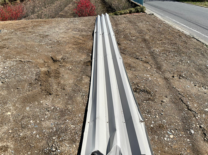 前回、駐輪場の折半屋根を取り付けた際は、この補強材はありませんでしたが、