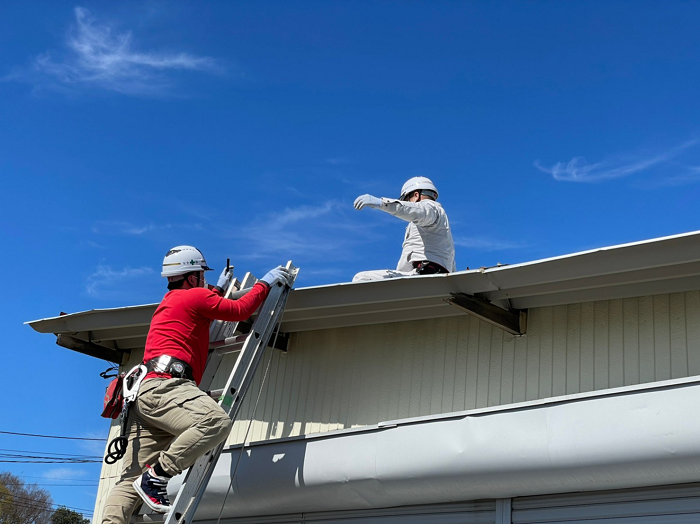 今回は足場は組まず、脚立を使用して屋根に上がりました。