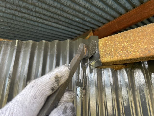 どの面の波トタンも錆の発生が目立っていたのですが、錆の状態によって、上部の波トタンは”張替”によるメンテナンスを、側面の波トタンは”塗装”でのメンテナンスをお勧めしました!