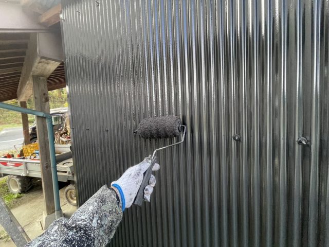 下塗りと同じ『シャネツトップワンSi‐JY』を塗装しました。上塗り材として使用すると遮熱性や耐候性を発揮します。
