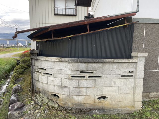 上伊那郡飯島町にあるY様邸を訪ねて、お話をお聞きすることが出来ました!物置を囲っている波トタンが、錆の発生で傷んでいる様子を、Y様はとても気にされていました…