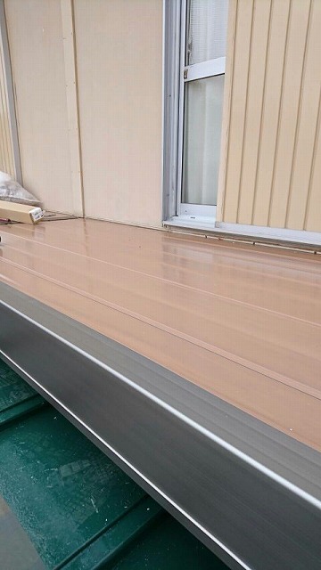 写真は屋根の瓦棒や建物側の包み板を塗装しているところです。