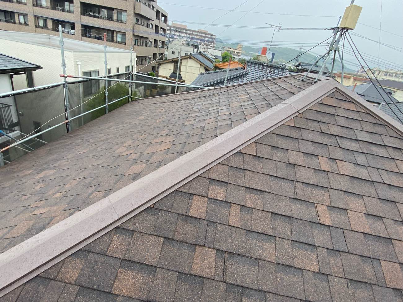 軽量で高耐久なアスファルトシングル「オークリッジスーパー」を葺きました。