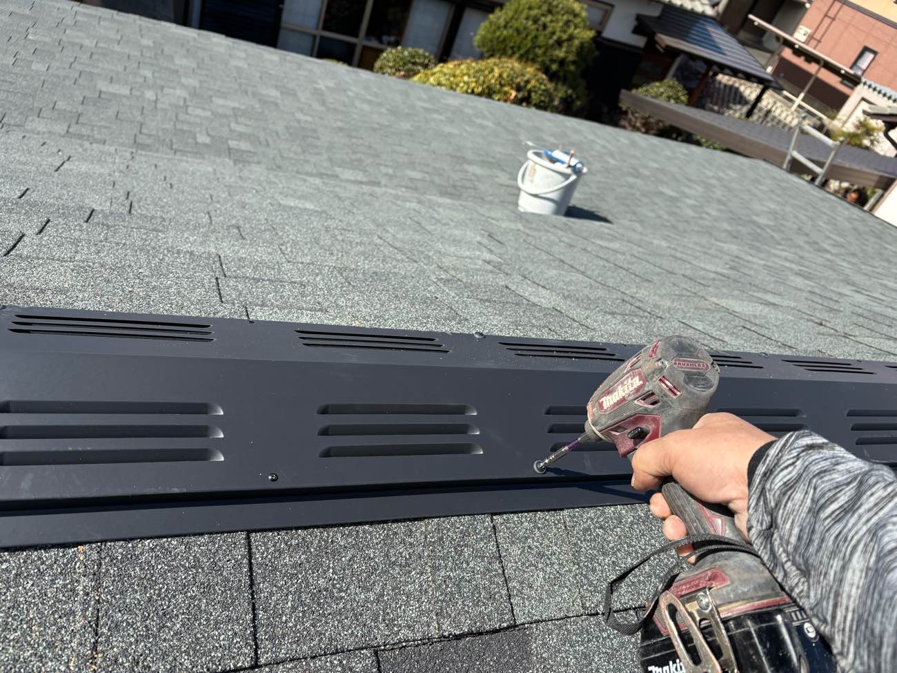 屋根面にオークリッジスーパーを施工できたら、板金を取り付けます。