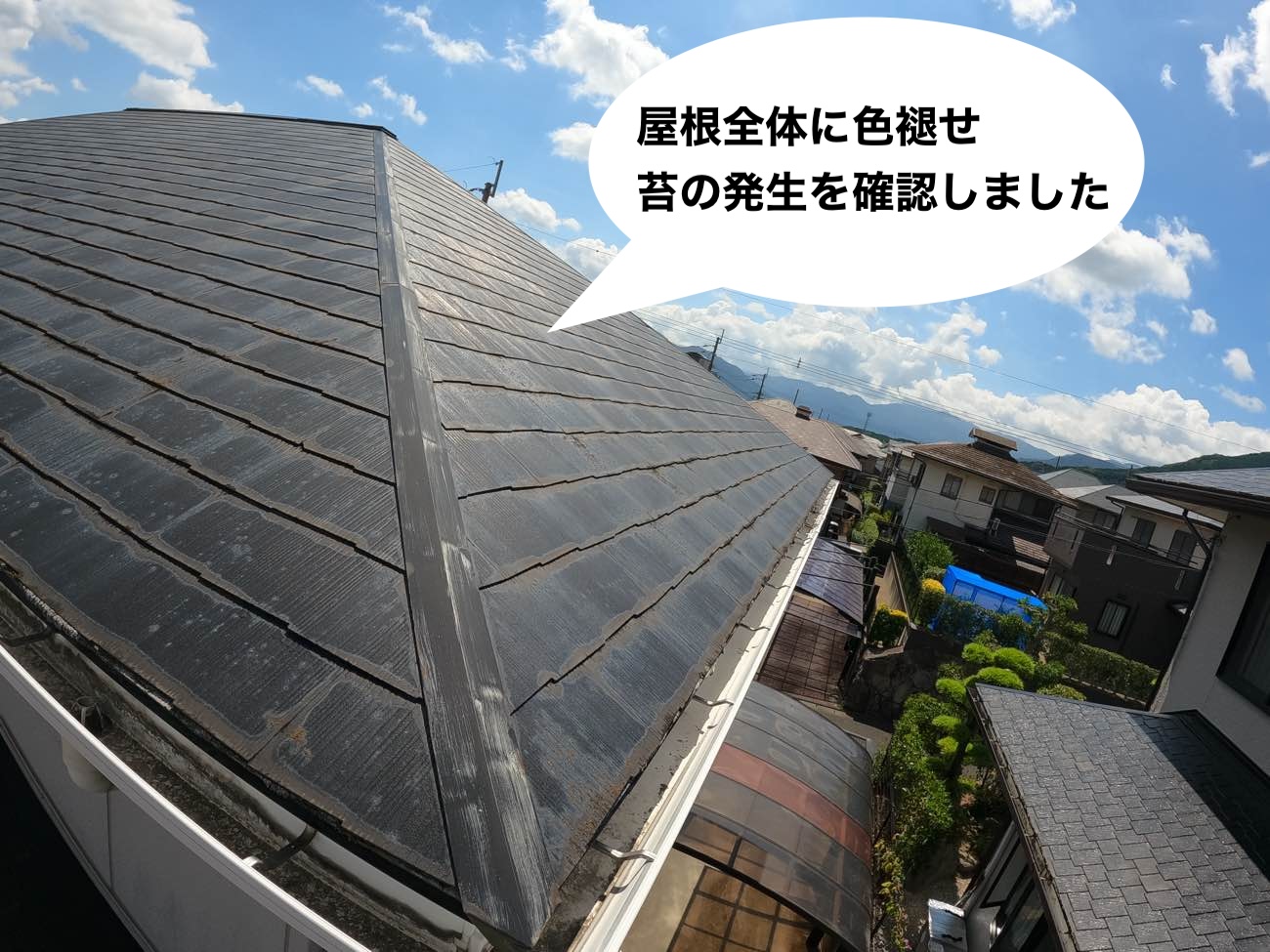 「屋根の劣化が気になっている」「外壁の汚れも目立つようになってきた」とのお問い合わせをいただき、現地調査を実施。