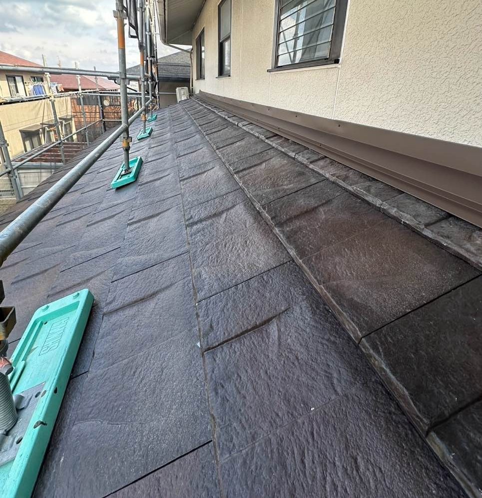 割れや浮き、汚れ、苔の付着などを確認し、屋根全体を洗浄。