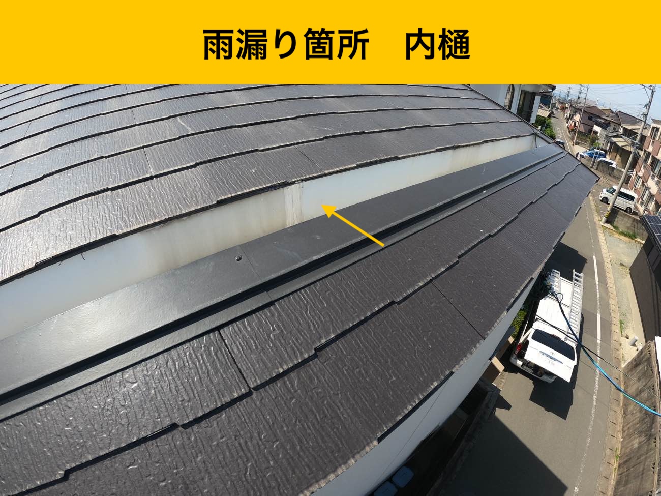 徹底した調査の結果、雨漏りの本当の原因は屋根の内樋にあったことが判明。