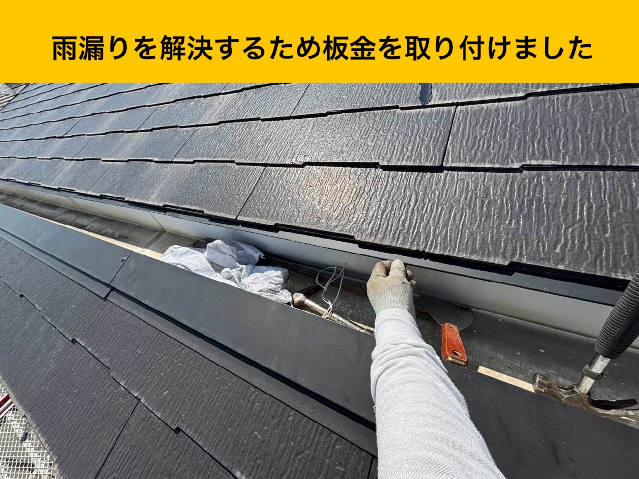 内樋に取り付けられていなかった板金を取り付けました。
