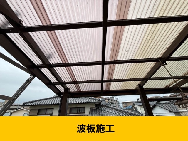 1枚のみ、新しいものを使用しましたが、同系色の波板を使用することで違和感ない仕上がりとなりました。