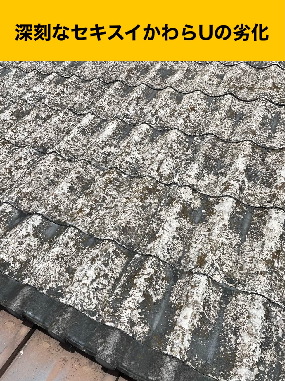 調査の結果屋根材には深刻な劣化を抱えるセキスイかわらUが使用されていました。