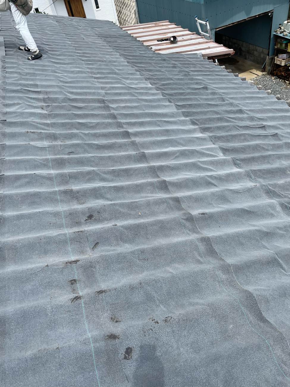 既存のボロボロに劣化した屋根材の上から、高性能な防水シートを被せて施工しました。