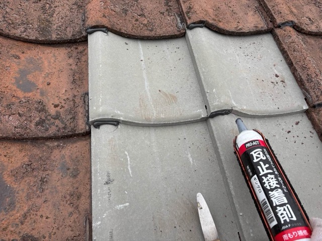 まず、雨漏りが報告された周辺の瓦に、細かなひび割れや、経年によるわずかなズレを確認しました。