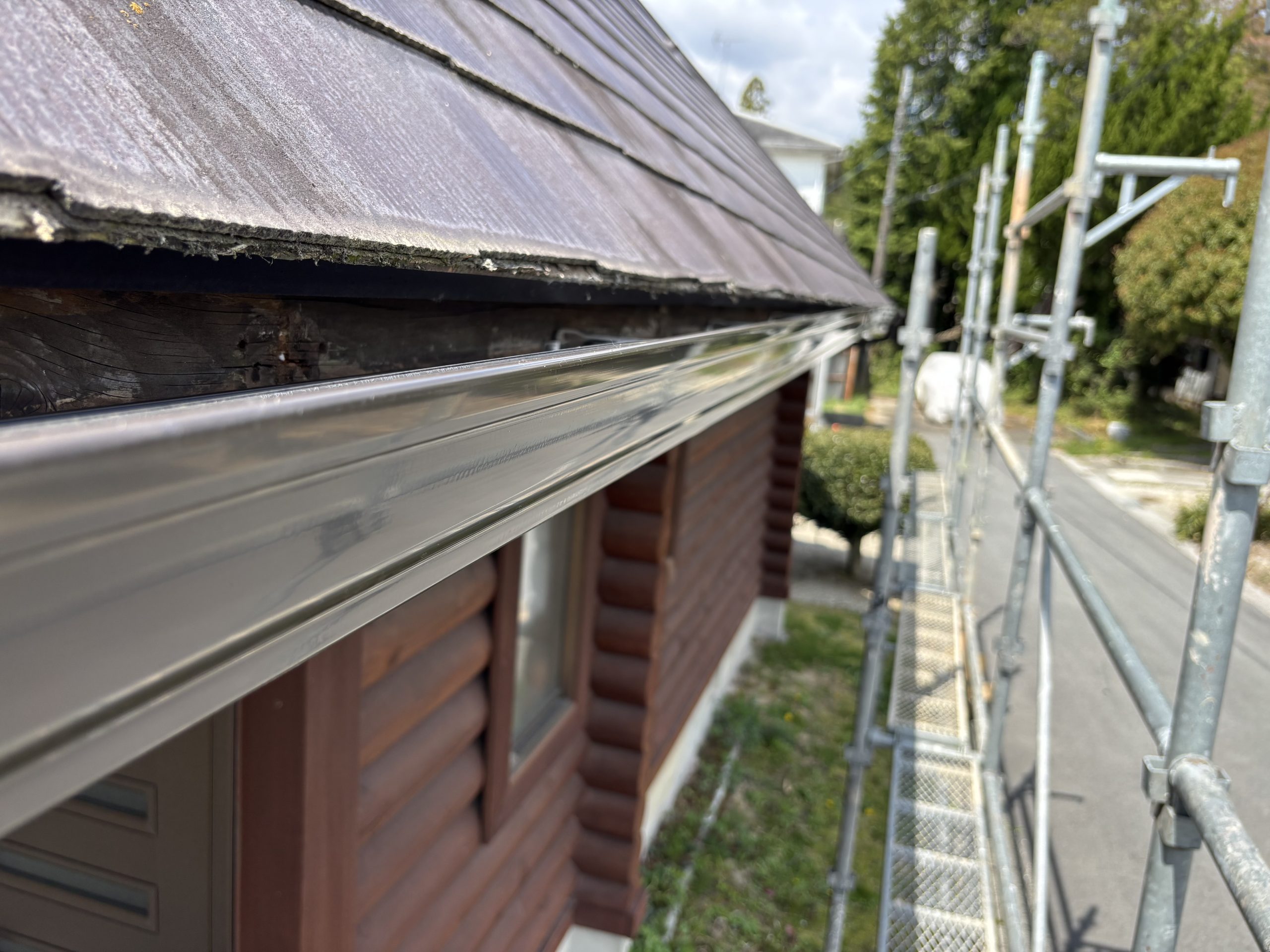 ホーム > 菰野町で雪害による雨樋破損・ログハウスを火災保険適用で交換工…