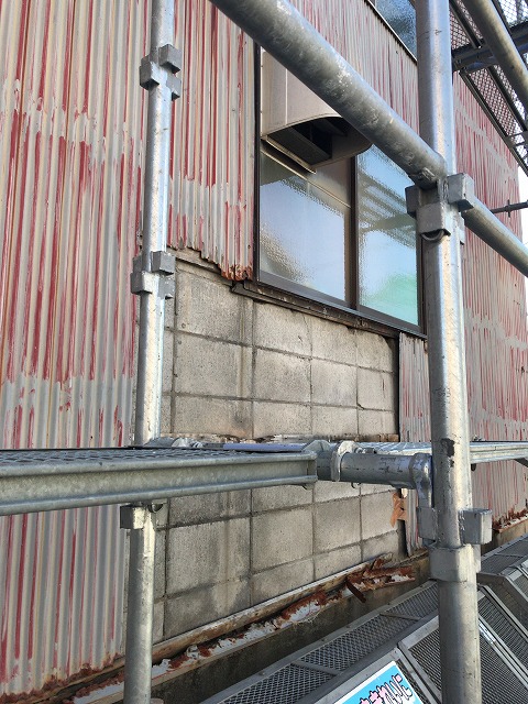 台風で板金が破損してしまったので、補修工事をしてほしいと依頼を請けました。