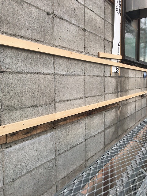 板金をすべてめくり終わった後に、新しい板金をあるための下地になる垂木を外壁に取り付けていきます。