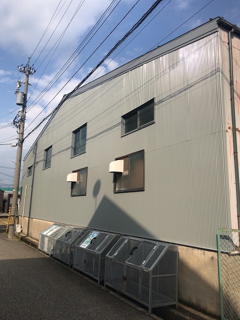 今回は野々市市にある賃貸物件で、板金外壁が台風の被害を受けて破損してしまったため補修工事をしてほしいと依頼をうけたので行ってきました。