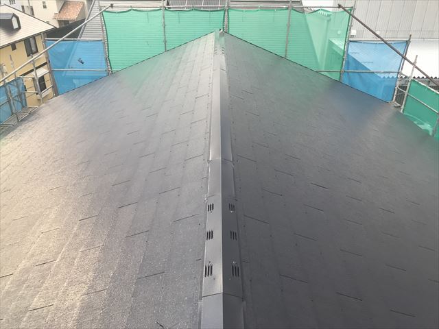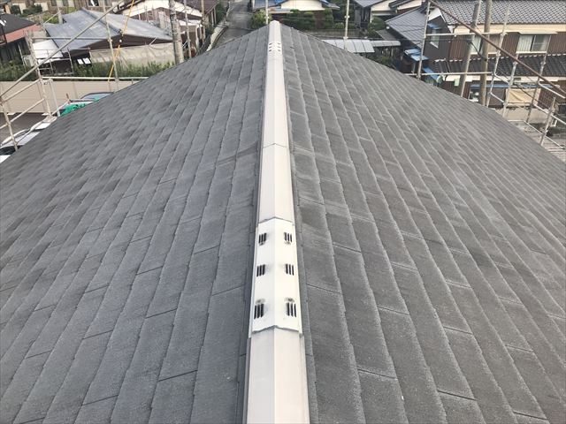 棟は屋根の頂上部分のことで、スレート屋根では板金を被せています。